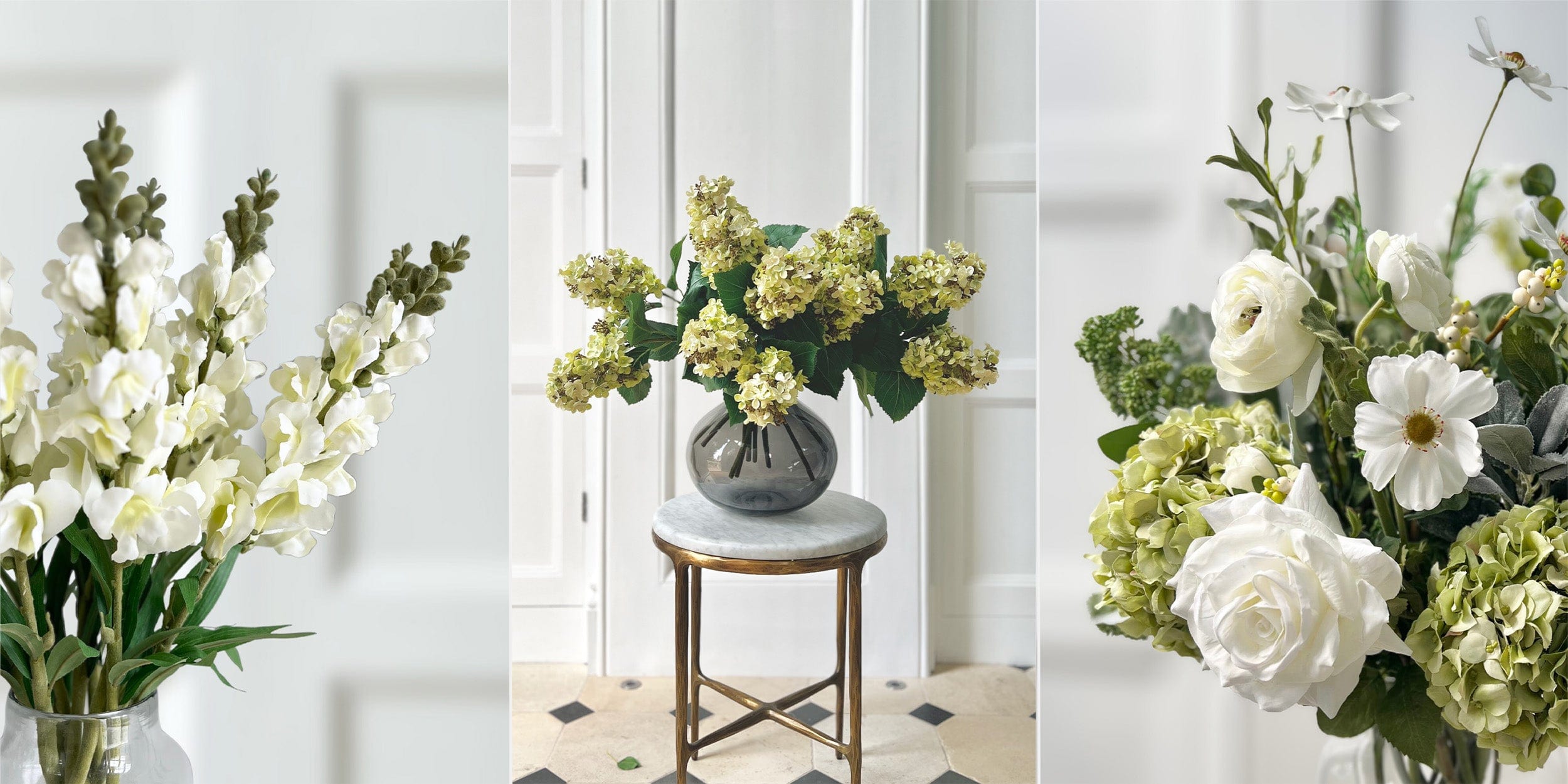 Artificial flowers really require very little maintenance but there are a few tips that we recommend to keep your blooms looking 'fresh'. We would suggest each month putting your hairdryer on a cool setting and using this to blow away any dust that may have settled on the petals. This is especially important for the white and lighter coloured flowers as it's the dust that tends to cause marks whereas these don't show up as much on the darker colours. If you do see a mark on the blooms we would suggest using a damp cloth to try remove any stains.